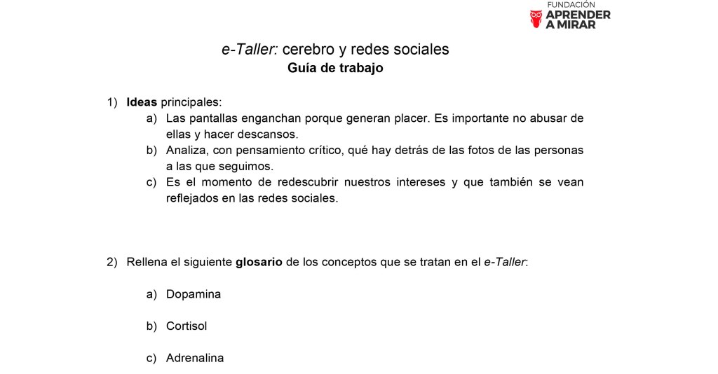 Sin abandonar el rigor científico que está en la base del PEA, al partir de cómo funciona el cerebro humano, el primer e-Taller se dedica a cómo reaccionan las neuronas cuando participamos en las redes sociales.