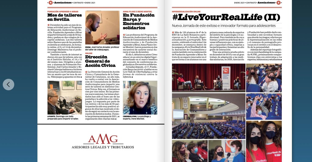 Esta publicación, que en enero ha llegado a su número 137, se divide en diferentes secciones, y brinda al lector la posibilidad de asociarse y colaborar en el desarrollo del que forma parte: el Programa de Educación Audiovisual liderado por Fundación Aprender a Mirar y la Asociación de Consumidores de Medios Audiovisuales.