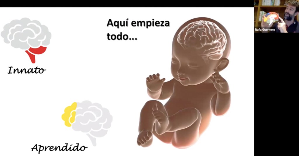 La primera zona cerebral que se forma es el tronco encefálico y el cerebelo, donde se encuentra lo innato —el instinto de superviviencia— y el cerebro automático involuntario e inconsciente.