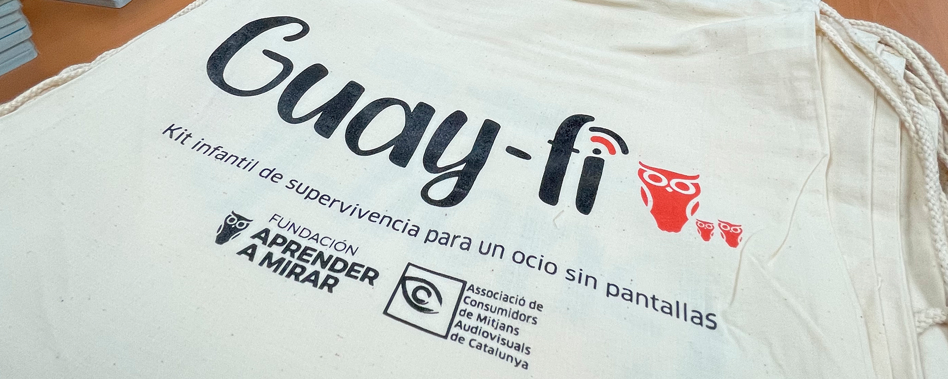 Guay-fi es el nombre que recibe el proyecto innovador y pedagógico que Fundación Aprender a Mirar lidera en conjunto con la Asociación de Consumidores de Medios Audiovisuales de Cataluña. En sí, es la adaptación de su Programa de Educación Audiovisual (PEA) al público infantil, a las niñas y niños de 3 a 6 años. Se trata de una propuesta que ofrece múltiples herramientas para docentes y familias con el objetivo de educar a los más pequeños en el consumo saludable de pantallas.