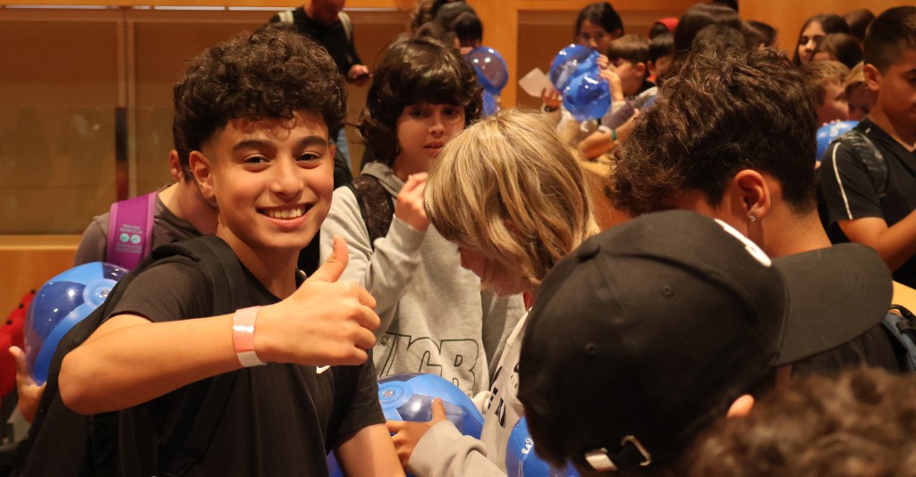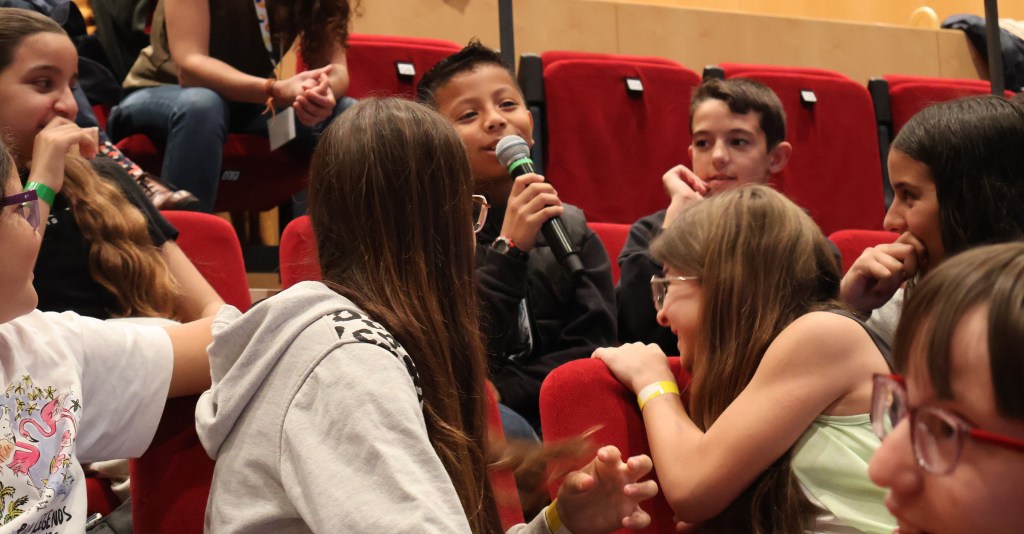 Después del desayuno se mezclaron los alumnos de las escuelas en distintos grupos para que se pudieran conocer entre ellos y hacer una actividad conjuntamente. El objetivo era crear un rap de dos versos sobre una temática específica del curso, que posteriormente se lo cantaron al rapero Subze, invitado en esta jornada.