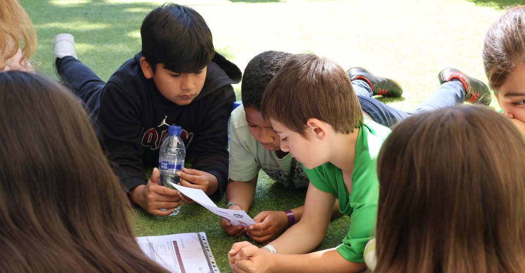 A pesar de la lluvia, los alumnos pudieron llevar a cabo la actividad prevista en el exterior. Se realizó un juego de rol en el que los niños y niñas tenían que interpretar distintas situaciones sobre la autoestima, la huella digital y el cine. Después, el dinamizador del grupo hizo preguntas para fomentar la reflexión y extraer conclusiones.